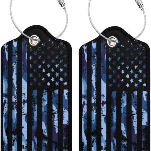 Set of 2 Luggage Tag for Suitcases Tie dye PU Leather Luggage Tag with Full Back Privacy Name ID Card Fun Laggage Tags